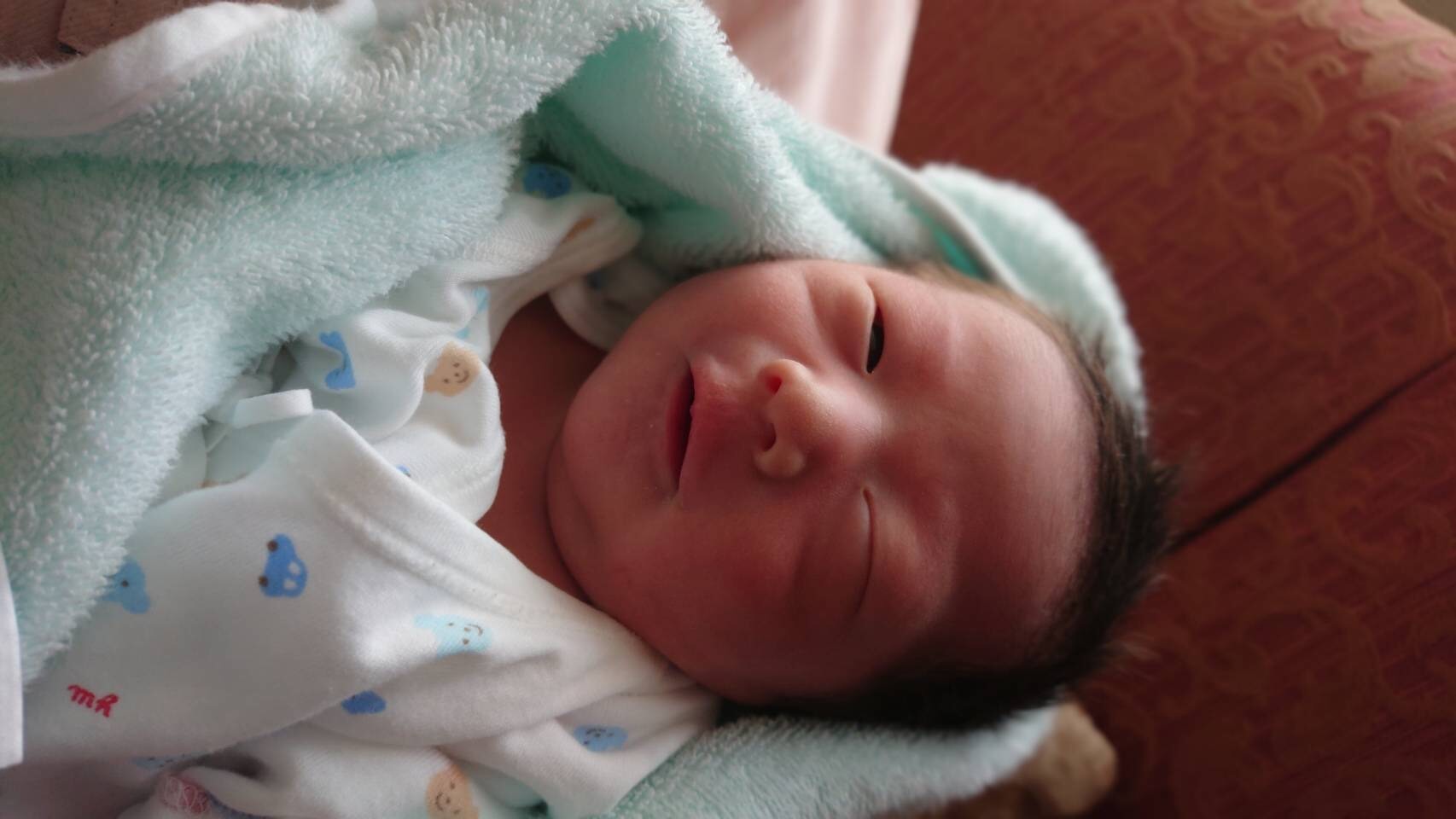 手術は部分麻酔だったので、深い呼吸をして自分が落ち着くこと、そして、生まれてこようとする赤ちゃんに「おいでおいで」と周りの看護師さんたちと一緒に唱えました。するとお腹の方から一度小さな産声が聞こえ、周りの看護師さんから「生まれましたよ、おめでとうございます」と言っていただき、大きな声で泣き始めた赤ちゃんと対面できました。