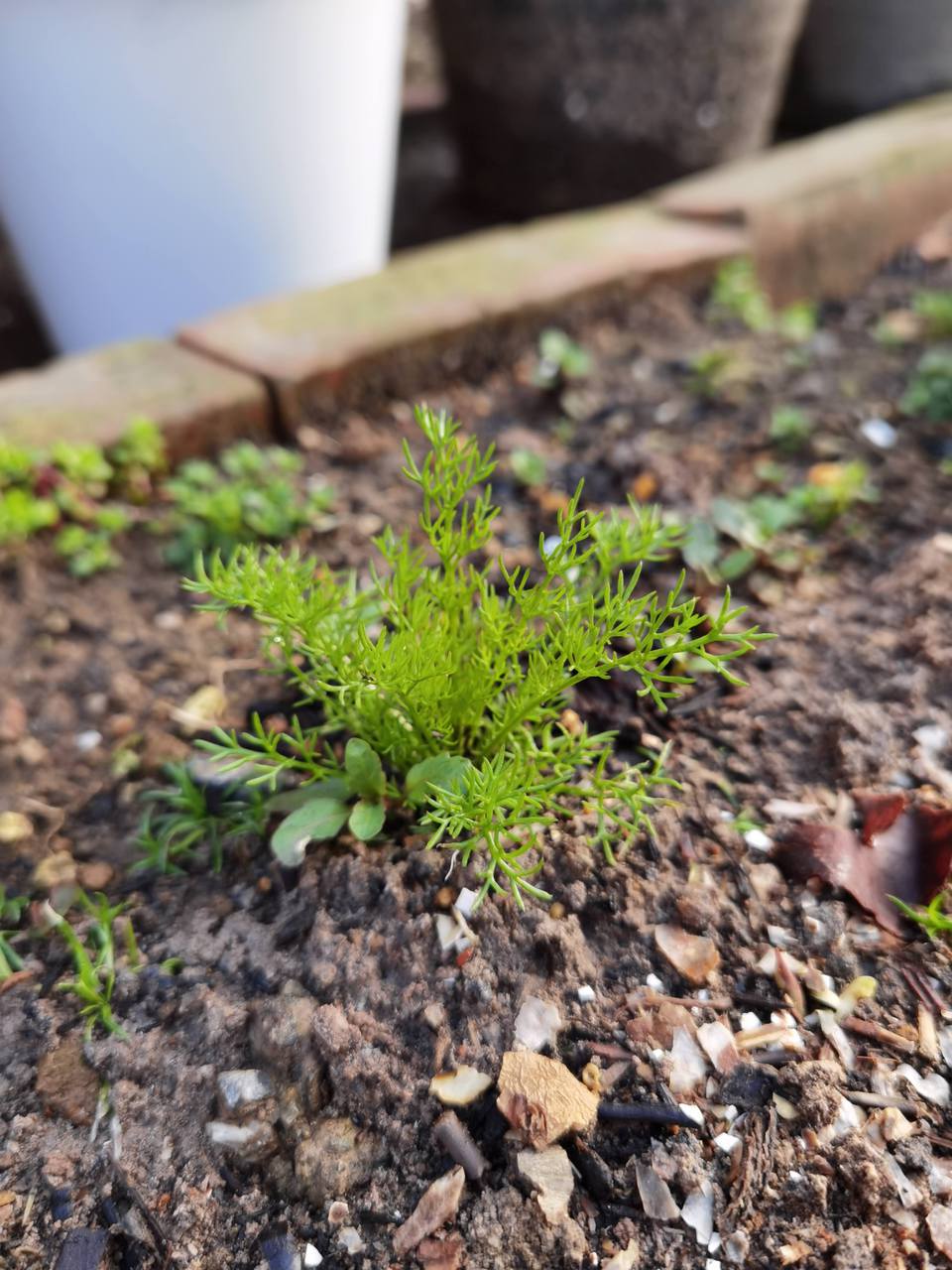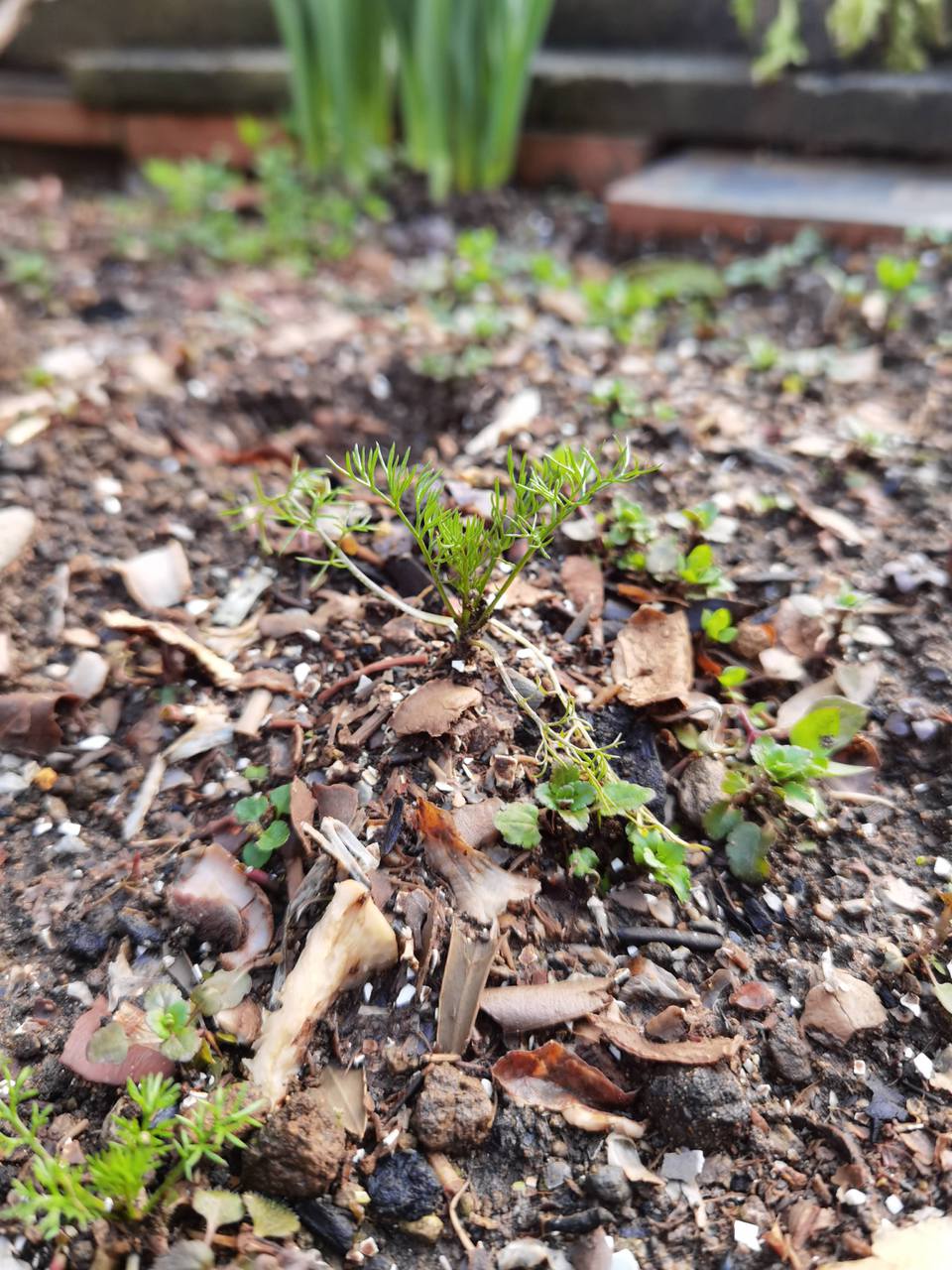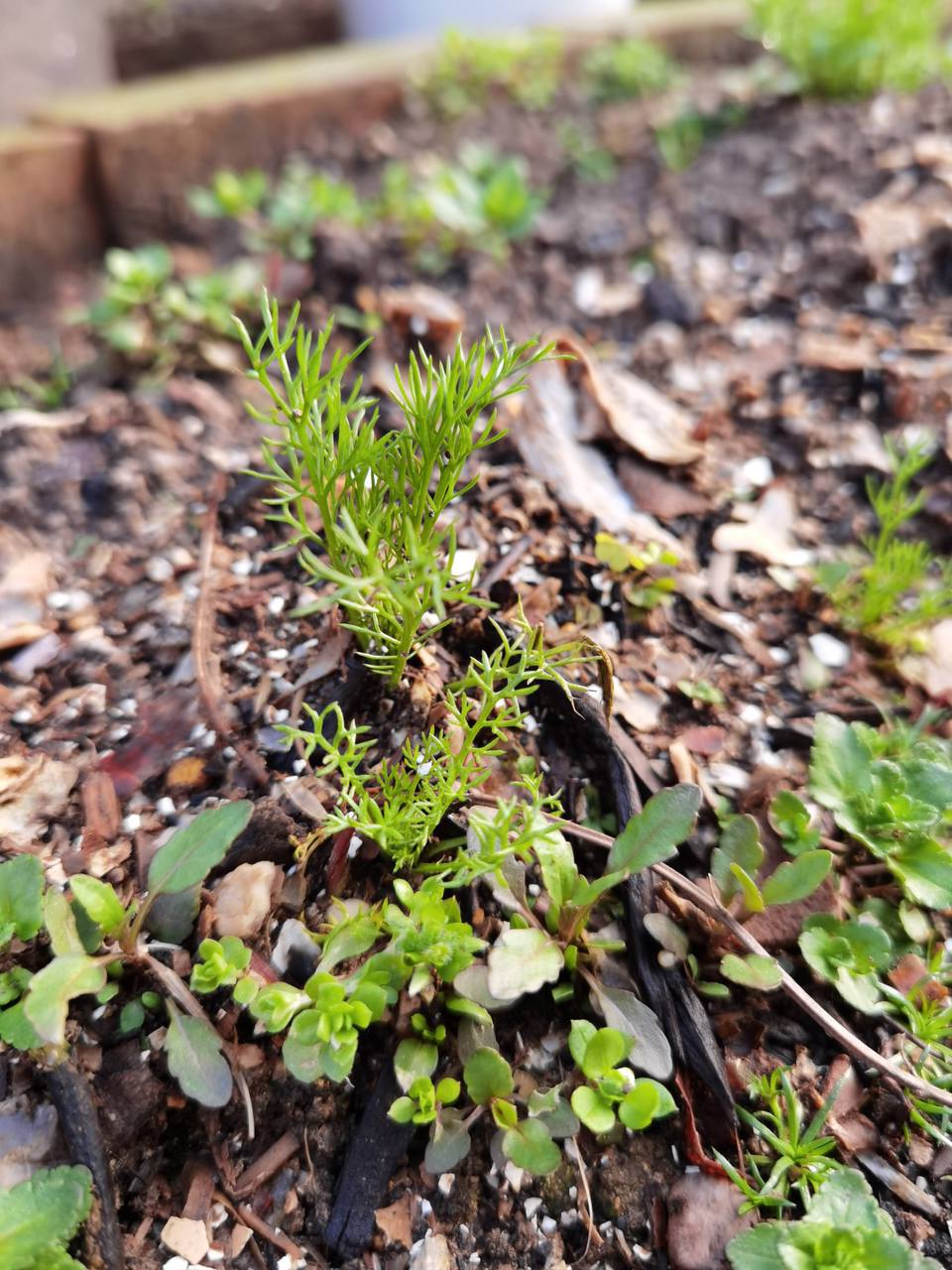 カモミール Katsutoshi 昨年の秋にごぼれ種からでてきたカモミール。 雪降る前に、たくさんの収穫を夢見ながら、土寄せしたり 植え替えたりしたのですが突然の1月の大雪ですっからかんに消えていたカモミール 寒さが和らいできてじっと足元を見つめると あちこちで芽が出ています。春がきています。 ← back