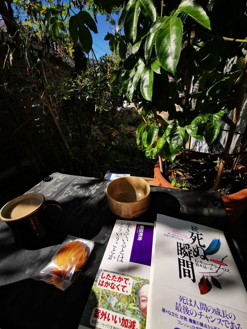 茶碗と本を